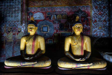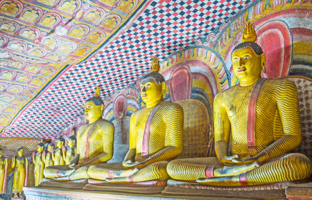 Dambulla, Sri Lanka - April 30, 2009: Buddha sculptures at Buddhists' cave temple in Dambulla at Sri Lanka