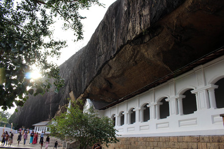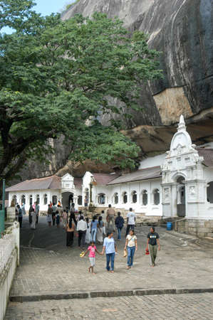 Dambulla, Sri Lanka - 18 December 2004: people walking in front of Buddhists' cave temple in Dambulla on Sri Lanka