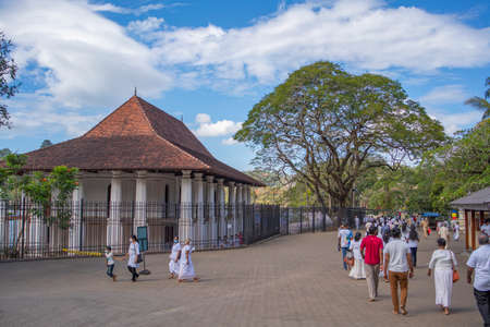 KANDY, SRI LANKA - DECEMBER 31.2021: People walking at the entrance to the Temple of the Tooth in Kandy. Buddhist temple Sri Dalada Maligawa