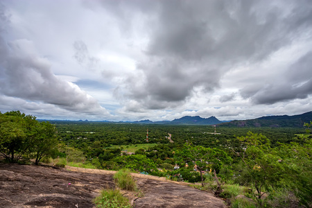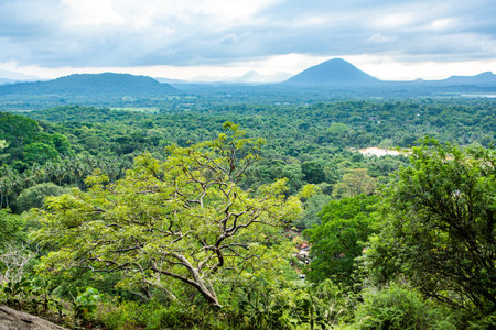 Landscape forest and mountain aerial view form Sigiriya rock, Sri Lanka, panoramic view, which dominates the jungle from all sides, Dambulla in Sri Lanka.