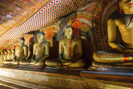 Statues of Buddha in the ancient Dambulla Cave Temple. Sri Lanka