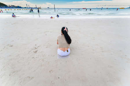 Chon Buri, Thailand - June, 27, 2020 : Pictures of Unidentified name people on Tawaen Beach in the day time on Koh Lan island after the outbreak of the Covid 19 virus.