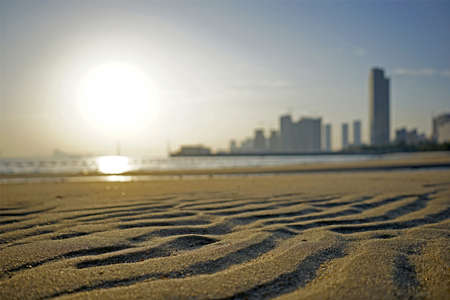 Sandy beach on Dubai Marina, made with Vintage Tones, Warm tones. Vacation or travel holiday concept.