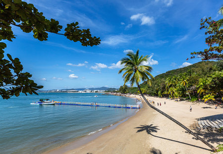 Sanya, China - June 27, 2017: Beautiful Sanya Bay and Phoenix Island, is a landmark Sanya.