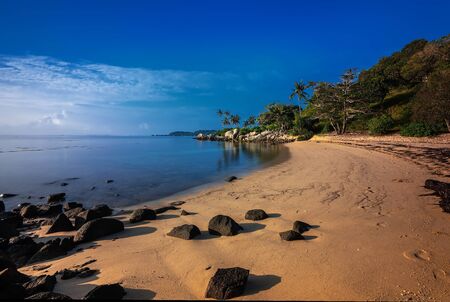 Tropical beach with palm trees in Koh Samui, Thailand