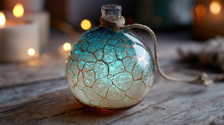 A captivating glass bottle featuring a stunning blue and white glitter effect, perfect for home decor, adding elegance and charm to any space.