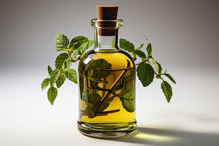 Peppermint oil extract with isolated kitchen table professional advertising food photography