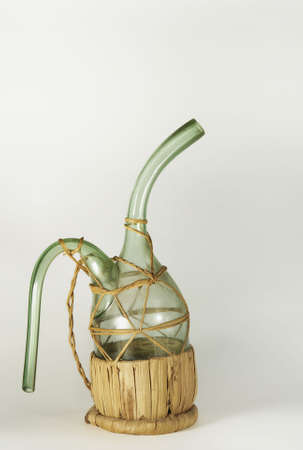 old, dusty straw wrapped pitcher on neutral background