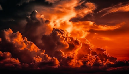 Vibrant sunset sky, moody and dramatic, a natural phenomenon of beauty generated by artificial intelligence