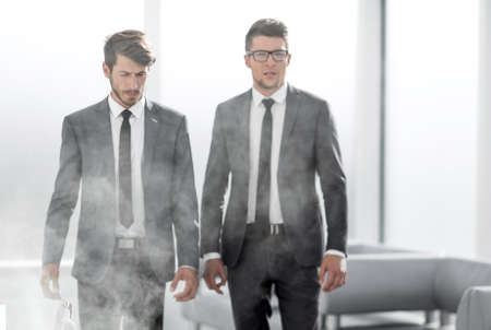 Mysterious businessman in the clubs of cigarette smoke