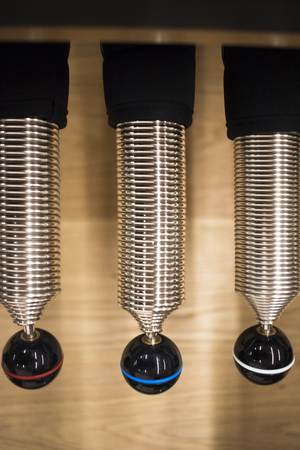 Pump, device, detail closeup concept. Big, hard made of steel spring on machinery