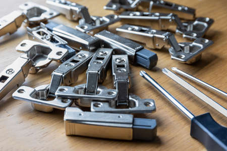 Pile of fasteners and screws close up. scrap metal. different metal parts