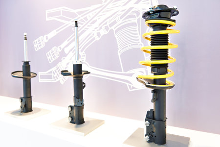 Precision-engineered suspension parts gleam under soft lighting on a modern work surface, showcasing craftsmanship and durability ideal for competitive racing and high-end vehicle