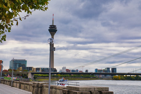 Duesseldorf skyline with Rheinturm and river