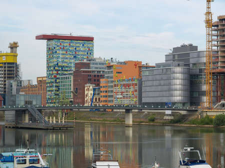 GERMANY, DUESSELDORF - AUGUST 14, 2020: Medienhafen. Dusseldorf cityscape with view on media harbor