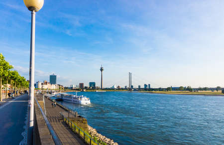 DUSSELDORF, GERMANY - CIRCA SEPTEMBER, 2016: Rhine river boardwalk with view on Dusseldorf city in Germany