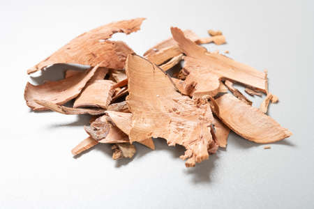 Wood shavings on table background. Wooden shaving at old plank board texture