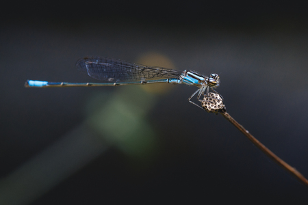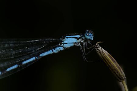 Close up portrait of a beautiful Azure damselfly Coenagrion puella in the Netherlands