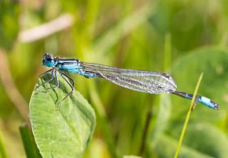 The Azure Damselfly Coenagrion puella in a field in the Netherlands