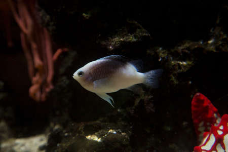 tropical animal in a salt water fish tank aquarium under water. Flash light can kill the animals so the photo was taken with available lights and reflectors