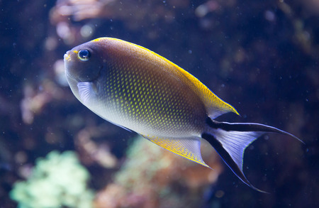 Colorful tropical fish swimming in an aquarium. Underwater world.