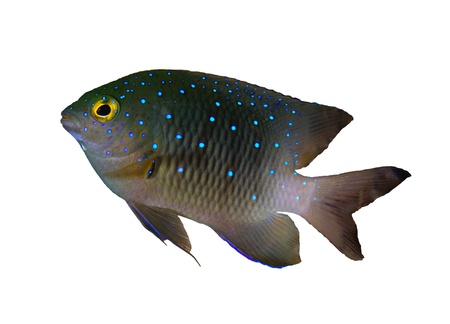 Whitespotted devil (Plectroglyphidodon lacrymatus), isolated on white background.