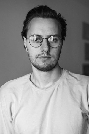 Modern Studio Headshot of Male Designer with Creative Haircut and Glasses