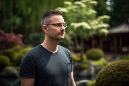 Portrait of handsome man with eyeglasses in the garden.