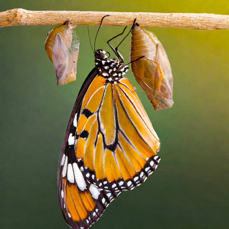 Butterfly emerging from chrysalis after emerging from chrysalis