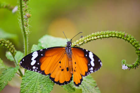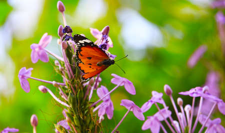 Beautiful butterfly (Plain Tiger Butterfly) perch on purple flowers