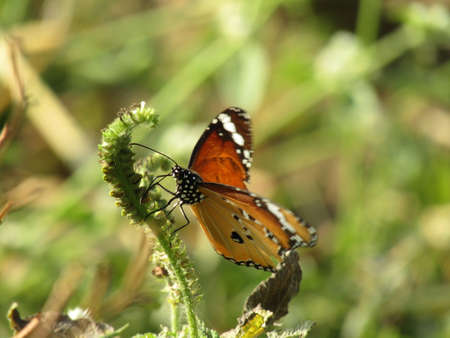 A Plain Tiger / African Monarch Butterfly on a blade of grass