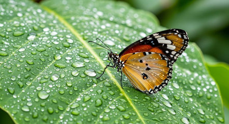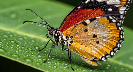Generative AI : butterfly resting on leaves