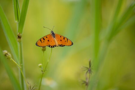 Beautiful butterfly on green leaves in nature garden