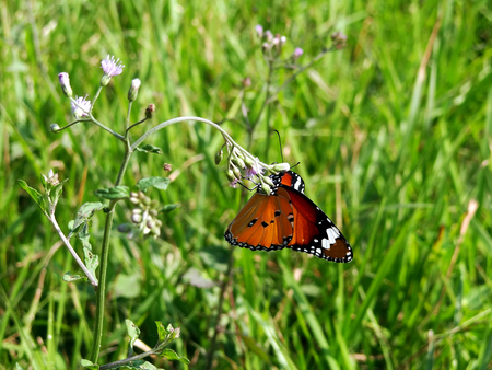 Butterflies seek nectar from flowers in the natural field. Butterfly. Striped tiger, Common Tiger