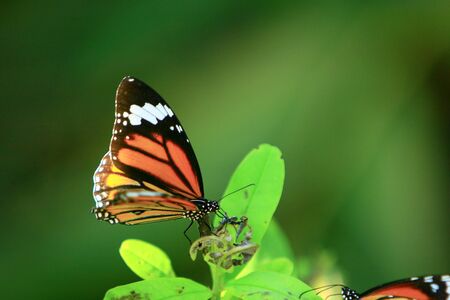 Butterfly on green leaf in the nature or in the garden