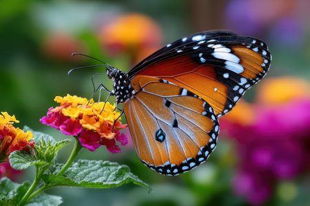 Lantana flowers and orange tiger
