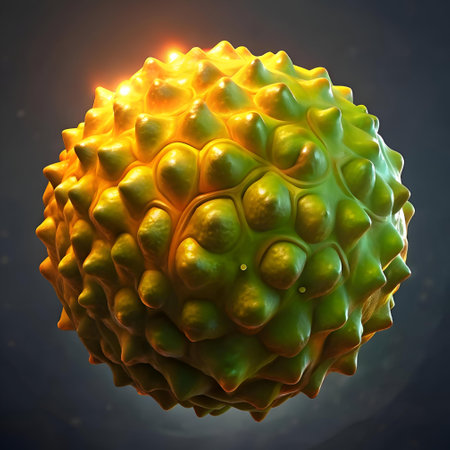 A striking 3D illustration of an Osage orange fruit. showcasing its unique. spiky texture and vibrant yellow green color. Perfect for botanical. scientific. or design projects.