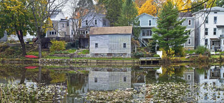 A panoramic view of an old neighborhood along the Raritan River in historic Clinton, New Jersey