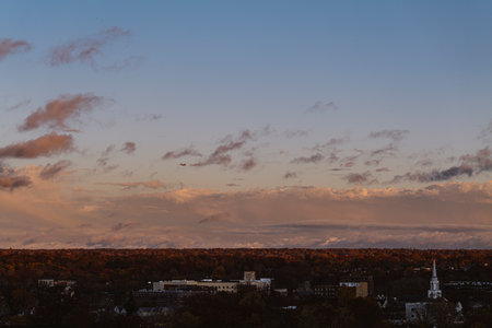 Sunset from the balcony of a tall building on a cloudy day, sunset overlooking Hackensack New Jersey. High-quality photo
