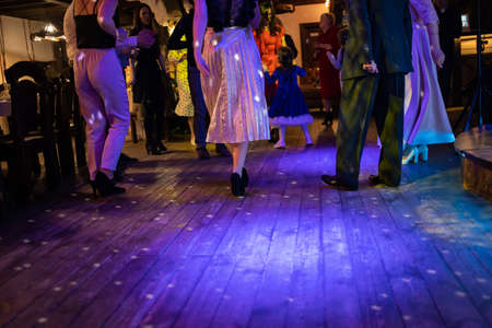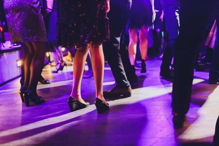 feet of people dancing on a club party. unrecognizable