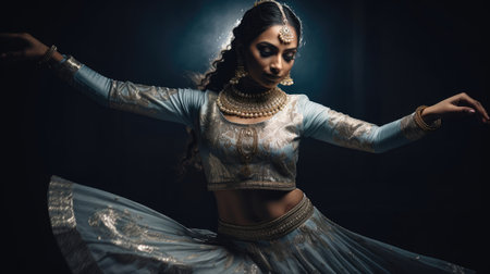 Indian Kathak dancer in intricate costume evoking storytelling and rhythmic intricacies