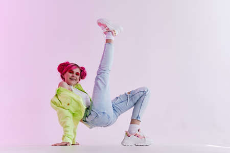 fashionable woman pink hair posing fashion clothes lifestyle fun design
