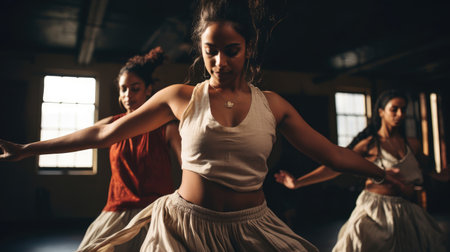 An urban dance group showcases youthful energy, diversity, and team spirit in vibrant performing arts. Concept of modern choreography and cultural fusion.