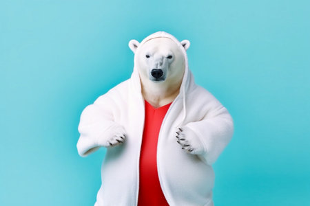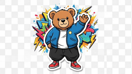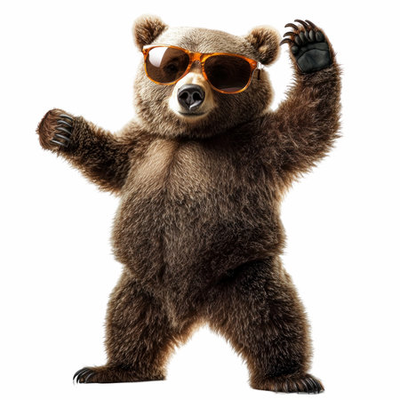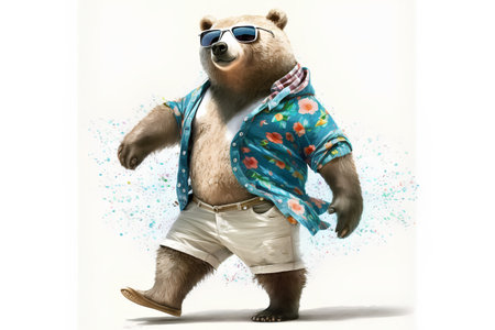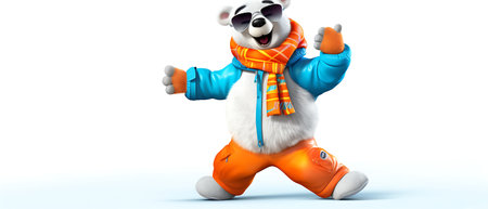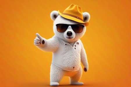 Joyful, stylish 3D bear character with full body, donning apparel and shades, against a backdrop by generative AI