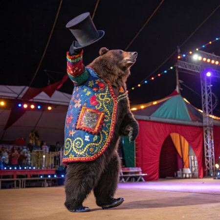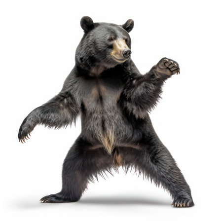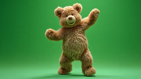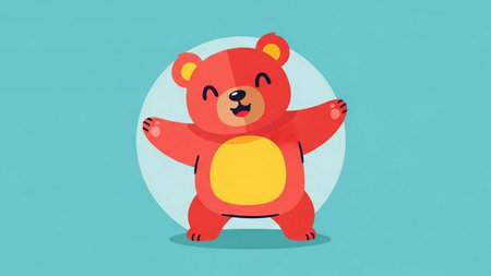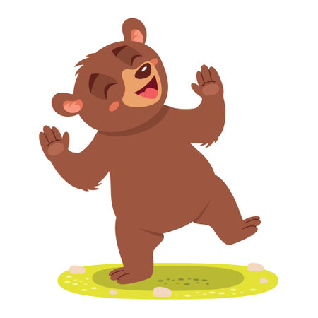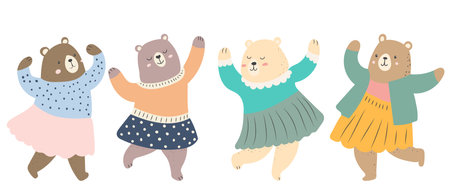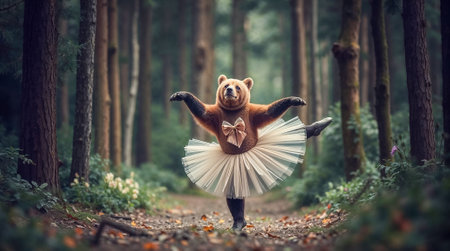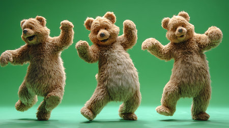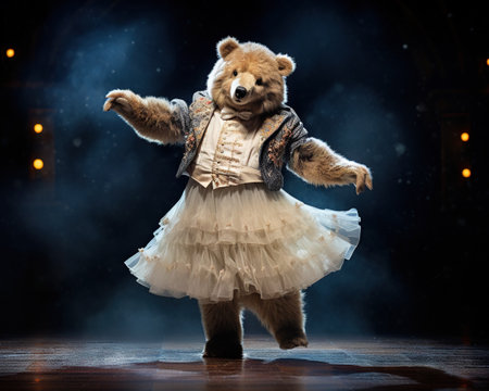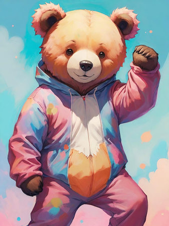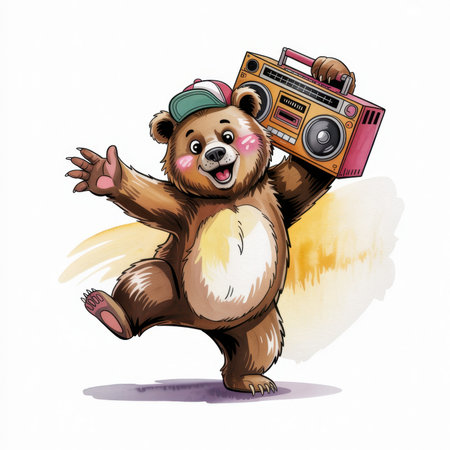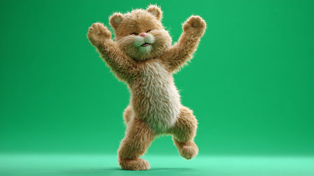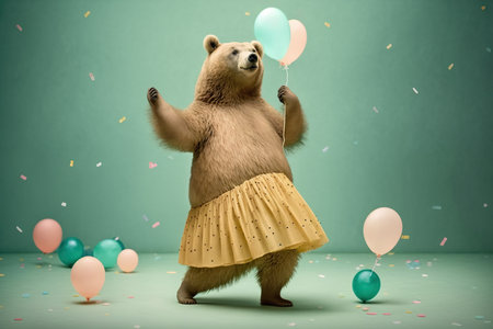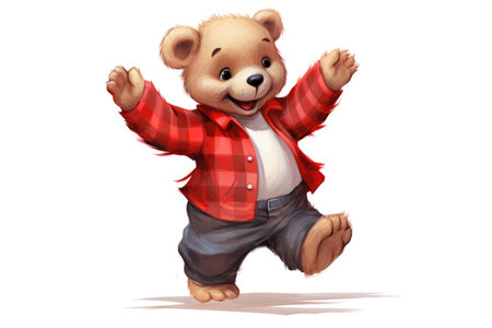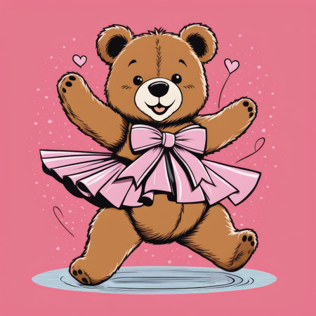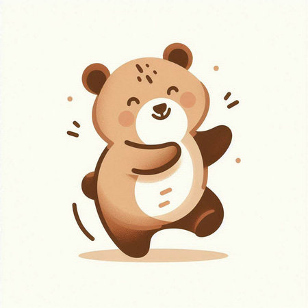 An AI-generated illustration of an adorable dancing bear against a white background.