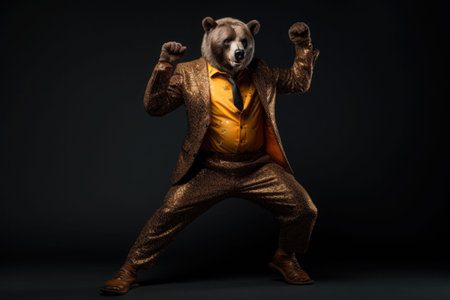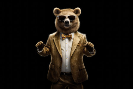Anthropomorphic bear dressed in an elegant suit like a businessman. AI generated illustration