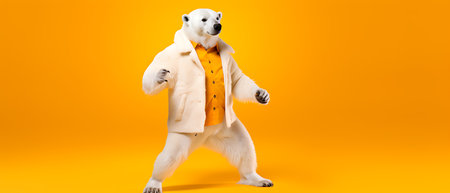 Polar bear in floral shirt and sunglasses, orange background