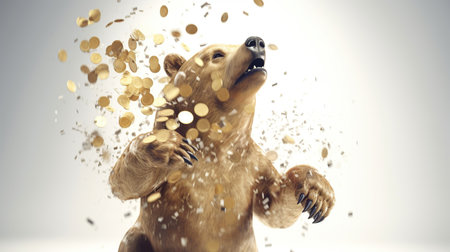 bear with gold coins. the concept of enrichment.