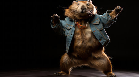 furry characters: fully textured, realistic rendering of a ground squirrel in the style of iconic rock and roll imagery, breakdance photography, artgerm, janek sedlar, animated exuberance, ben wooten, detailed costumes. wilcom created this unique and detailed furry character with a nod to various artistic influences. ai generated