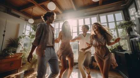 Group of young friends dancing at the party